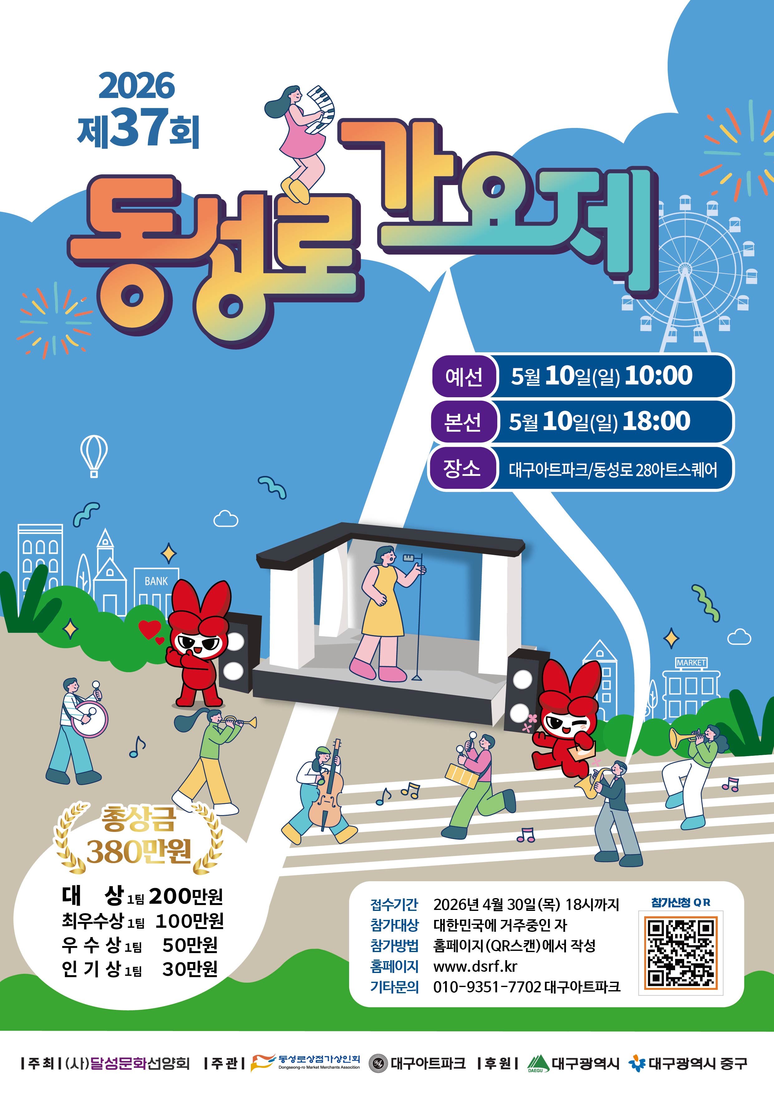 2026 동성로 축제 가요제가 아래와 같이 개최되오니 많은 관심과 참여바랍니다.